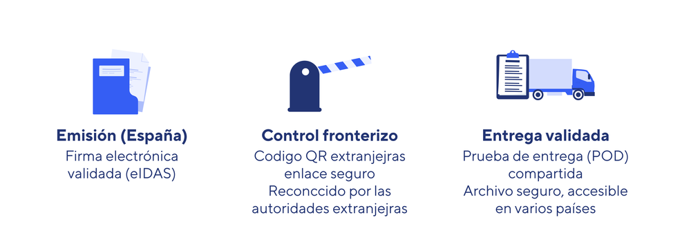 Las autoridades de transporte y aduanas en España y en los países ratificados lo verifican mediante QR, PDF seguro o enlace TMS/ERP.