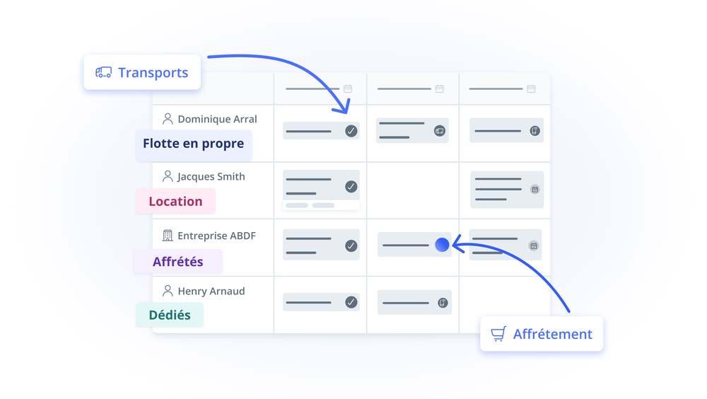 Avec Dashdoc, plus besoin de compromis. Que vous exploitiez une flotte en propre, collaboriez avec des transporteurs affrétés ou gériez des chauffeurs dédiés, tout le monde est à la même enseigne dans votre TMS Dashdoc.