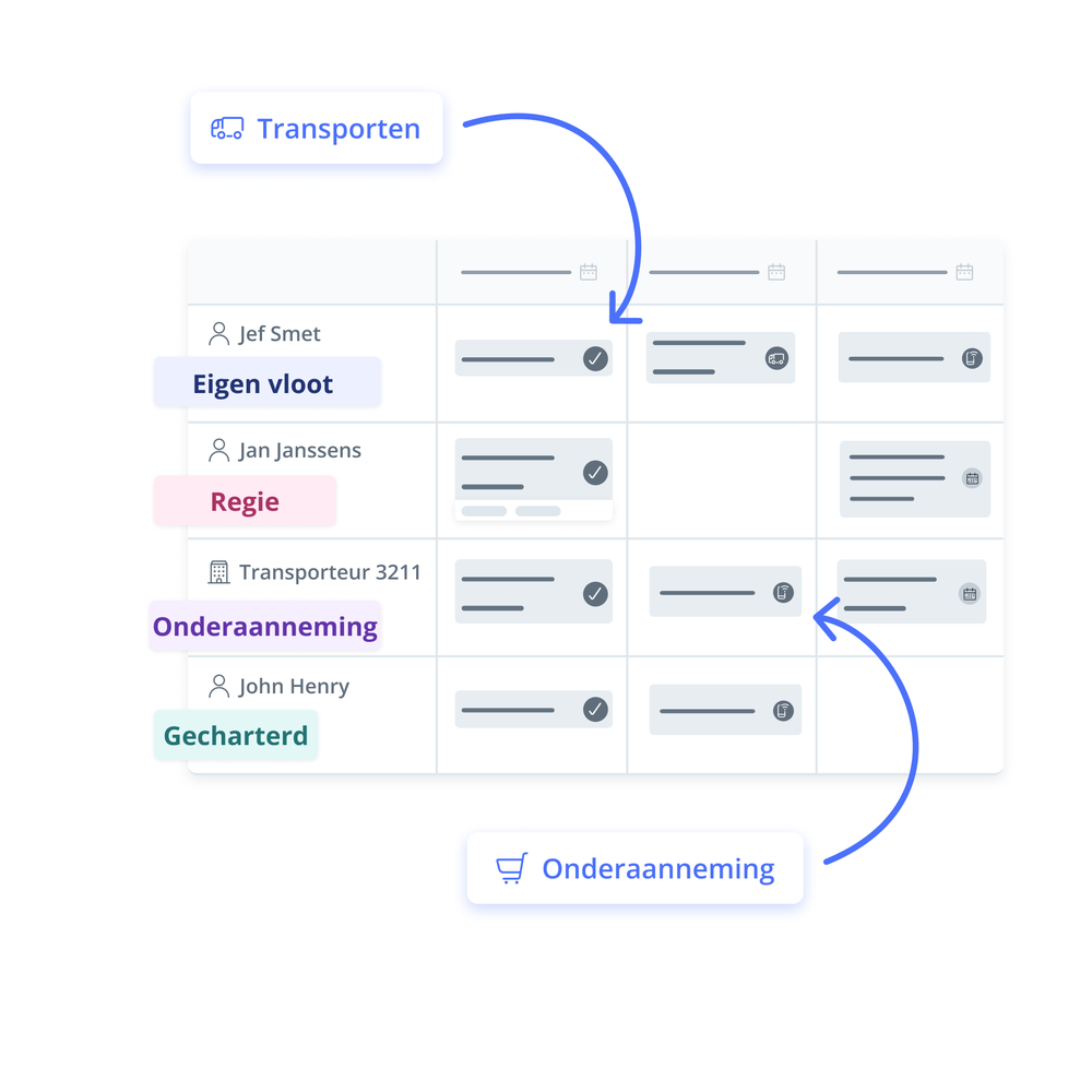 Met Dashdoc hoeft u geen concessies te doen. Of u nu een eigen vloot beheert, werkt met chartertransporteurs, of regie chauffeurs aanstuurt, u krijgt dezelfde gestroomlijnde ervaring – allemaal in één krachtig transport management systeem.